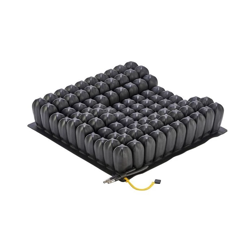 Cojín antiescaras Roho Enhancer. El cojín Roho Enhancer está dotado de 2 válvulas que regulan 2 compartimentos independientes, exterior e interior. El resultado es una correcta alineación y rotación de los fémures, y reducción de la presión sobre el hueso sacro y el coxis. Su composición en 3 niveles, con celdas de 10, 8 y 5 cm de altura colocadas estratégicamente, mejora la estabilidad lateral en la silla de ruedas y centra al usuario cómodamente en el medio del cojín.